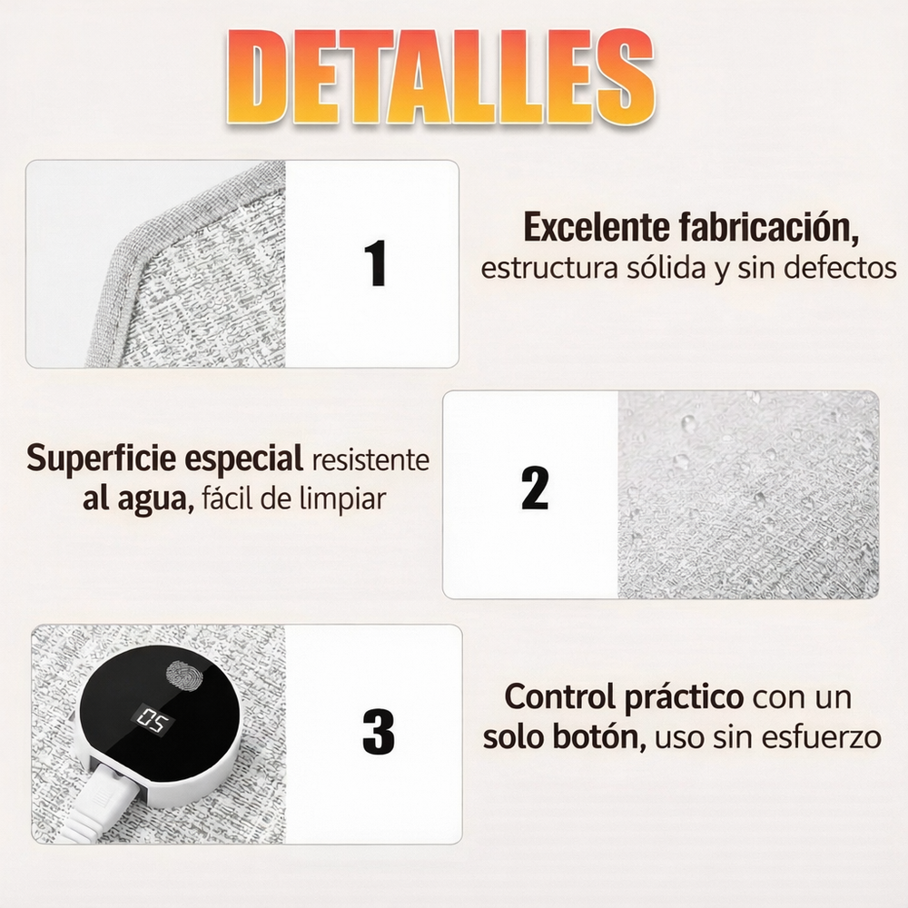 Sí, su funcionamiento es intuitivo. Con controles simples, puedes ajustar la temperatura a tu gusto, lo que te permite disfrutar de un calor perfecto sin complicaciones ni distracciones.